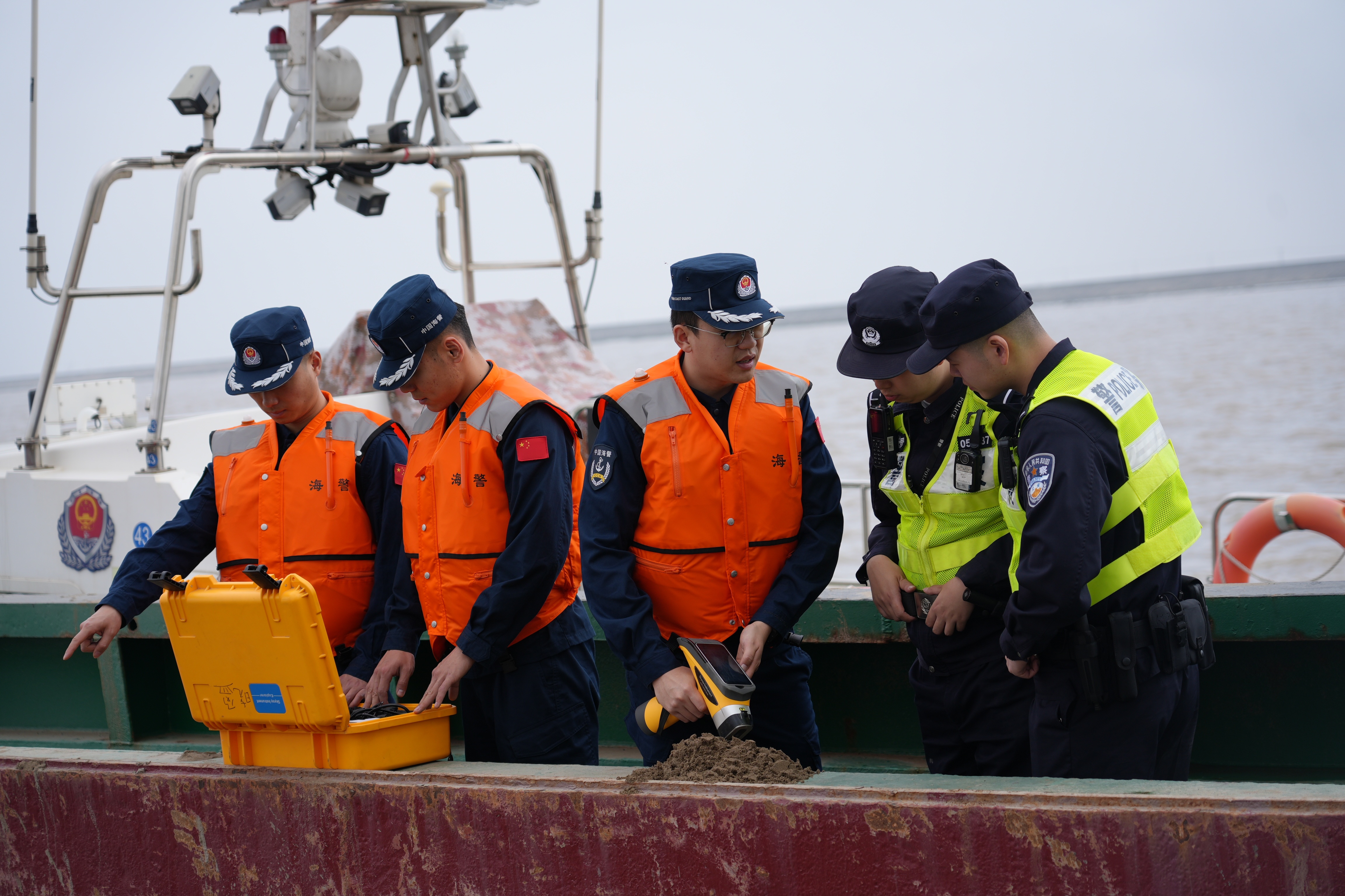 非法倾倒渣土、违规排放污染物等行为,直接威胁中华鲟赖以生存的水域环境。为守护保护区水域安全,崇明海警局横沙工作站联合青草沙治安派出所、青草沙水库开展保护水源地联合执法行动。运用“空中+水面+地面”三位一体布控优势,海警执法艇对取水口附近海域进行拉网式巡查,重点排查非法捕捞、违规排放等行为;执法人员运用渣土检测设备,对过往船舶是否存在非法倾倒渣土、违规排放污染物等进行精准检测。无人机搭载高清摄像头与热成像设备,对大堤沿线、滩涂区域进行高空巡航;陆上执法组进入水库核心区实地巡查。通过“车巡+步巡+无人机巡”三线并进,实现对保护区“可视、可管、可控”的全域覆盖,为中华鲟营造安全的生存环境,筑牢保护区生态屏障。