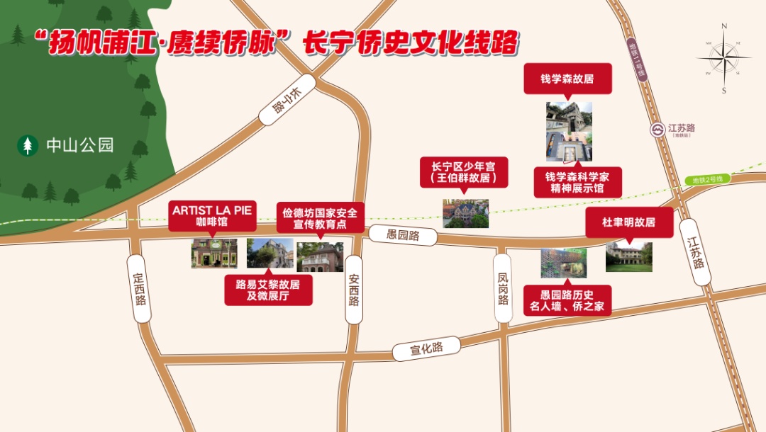 在愚园路红色宣讲团骨干叶宏讲解下,侨界新媒体人士一行沿着发布线路开展上海统战文化“步寻尝”活动,以Citywalk采风形式,先后探访长宁区少年宫(王伯群故居),钱学森故居,钱学森科学家精神展示馆,杜聿明故居,愚园路历史名人墙、侨之家,俭德坊国家安全宣传教育点(吴石将军生平展),路易•艾黎故居及微展厅。