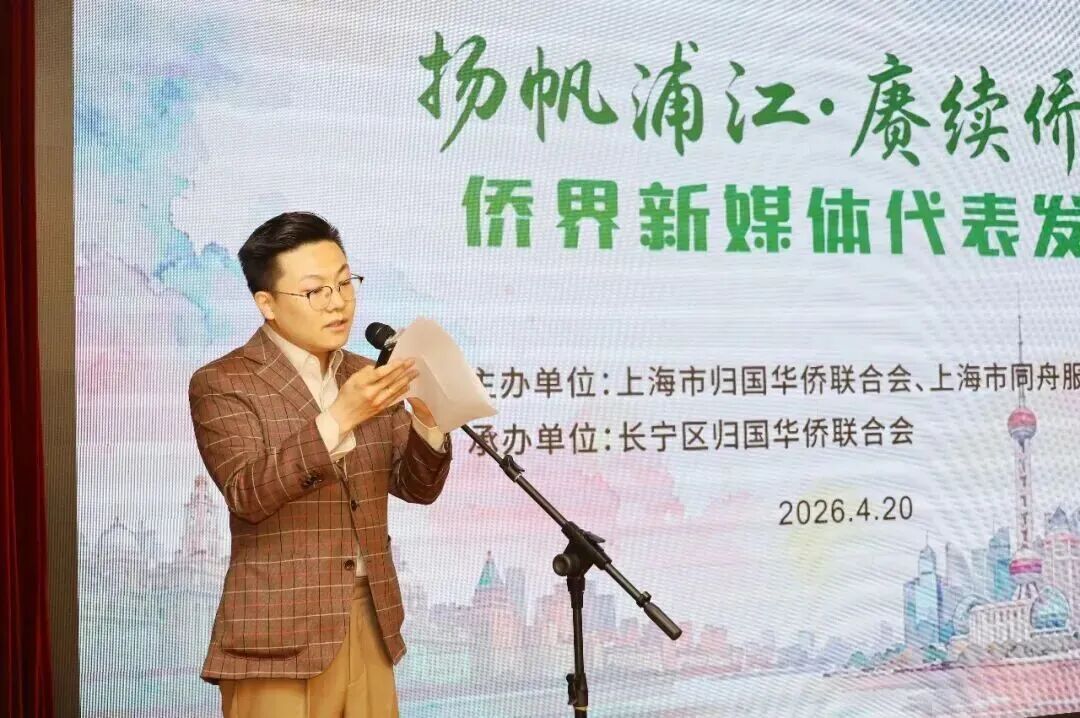 马士威代表长宁区政府致欢迎词。他表示,长宁区是广大归侨侨眷和海外侨胞创新创业的热土、安居乐业的乐土,见证了侨脉的赓续与传承,希望侨界新媒体积极讲好长宁故事。