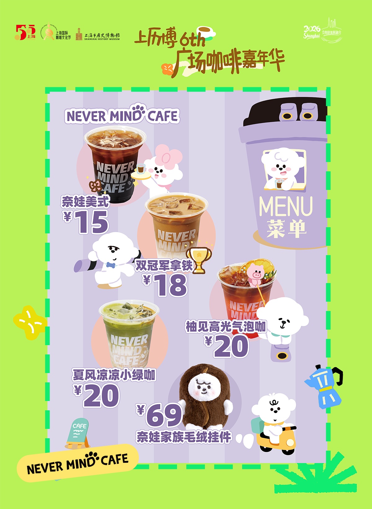 第6届「广场咖啡嘉年华」大咖集合⭐️五一锁定上海市历史博物馆中庭重磅嘉宾「奈娃家族」你可能没听说过 但是一定刷到过系列@奈娃家族NEVER'S FAMILY国产高人气萌宠IP 可爱治愈❤️的视频吸引了千万级别的关注高人气“女明星”小狗奈娃️也在上海开设了首家线下店铺——奈娃家族咖啡店奈娃家族满载可爱的暖心咖啡☕将在五一准时送达上海市历史博物馆广场宠物友好欢迎带着孩子一起玩吧奈娃家族历博广场专属菜单:奈娃美式 双冠军拿铁柚见高光气泡咖夏风凉凉小绿咖奈娃家族毛绒挂件欢迎各位朋友五一来历博和奈娃家族一起在人民广场碰头嘉宾陆续揭晓 Let’s 保持期待 五一开在博物馆中庭的咖啡盛会⏰ 时间 2026/4/30 – 2026/5/4(10:00-20:00)2026/5/5(10:00-18:00) 地点上海市历史博物馆 中庭广场南京西路325号地铁1、2、8号线人民广场站11号口直达 最新活动&展览消息敬请关注历博官方小红薯#上海在这里 #上海在这历 #上海市历史博物馆 #广场咖啡嘉年华 #奈娃家族 #奈娃咖啡 #城市活动超好玩 #五一出游 #五一去哪儿 #五一出行问活人 #五一我在现场