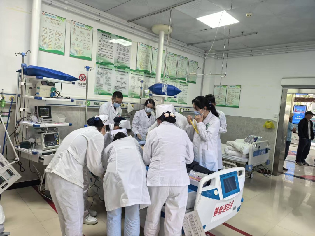 4月18日7时13分,维西县人民医院急救工作群接到医共体成员单位(保和镇卫生院)紧急通知,一名“胸痛、胸闷、心悸1小时”的患者高度怀疑急性心梗,急需救治。依托医联体及县域医共体联动机制,急诊科即刻响应,快速启动胸痛急救绿色通道,全面开启胸痛抢救流程,为患者争取黄金救治时间。关键时刻,上海“组团式”帮扶援滇医疗队队员汪丽韡主任、内科邓光辉主任临危不乱,迅速指挥抢救团队投入战斗。