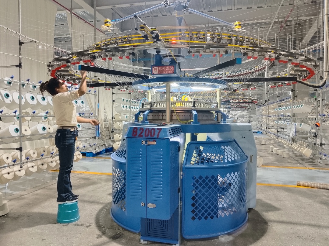 新疆际云染织科技有限公司位于巴楚城南产业园,占地320亩、厂房25万平方米,总投资超10亿元,作为南疆规模最大、距离中亚最近的针织印染综合企业,主营针织面料织造、印染,年产针织布2万吨、大圆机1800台,年产值超10亿元,提供千余个就业岗位。
