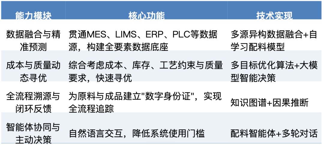 配料是钢铁制造前端炼焦与烧结工序的核心,直接决定焦炭、烧结矿质量与生产成本,但长期面临多重挑战:缺乏科学多维度预测模型,难以基于煤质特性、矿石成分等海量因子精准预判关键质量指标,产品性能波动大。优质原料稀缺、对高价原料过度依赖、配比组合全局优化不足,配料成本居高不下。数据分散在MES、ERP、LIMS等孤立系统,质量异常难以快速定位,不利于精准追溯与复盘优化。生产执行、经营管理、配比计算、化验检测等环节数据孤立,信息传递滞后,决策及时性差。缺乏贴合企业自身特点的个性化原料评价方法,科学配料策略制定缺乏依据。02 解决方案:构建“数据感知-智能决策-精准执行”新范式