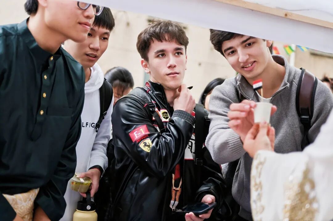 国际美食嘉年华现场,近40个各具特色展台串联起 “舌尖上的世界”。马来西亚椰浆饭、保加利亚芝士面包、巴西烤肉、俄罗斯可丽饼等美食交相辉映,展现“数智无界,青年同行”主题下文明互鉴的时代印记。与此同时,各国学生通过传统服饰展示、特色游戏体验及美食制作教学等形式,在沉浸式互动中拉近了彼此距离。