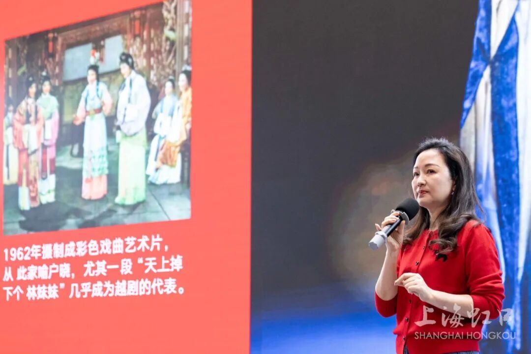 讲座中,方亚芬从越剧百余年的发展历史讲起,梳理了从落地唱书、小歌班到新越剧的演变脉络,细数越剧四大经典剧目的艺术特色,追忆老一辈艺术家的风采。同时,方亚芬解析了越剧服饰的穿戴讲究以及妆容的演变过程,亲自示范了越剧发展过程中不同时期的唱腔特色与不同人物的身段念白。