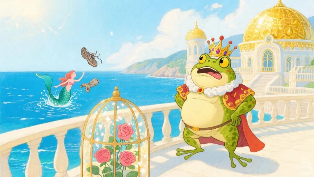在一片蔚蓝的大海边,矗立着一座华丽的王宫,里面住着一个贪心又自私的青蛙国王。他最大的爱好就是不断地收集金银财宝。