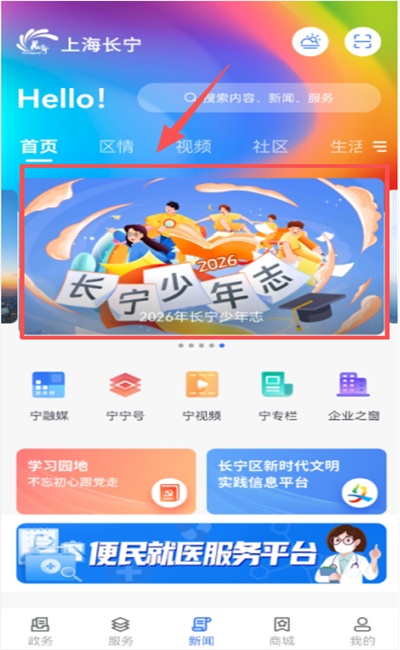 1. 首页找到“长宁少年志”活动入口;