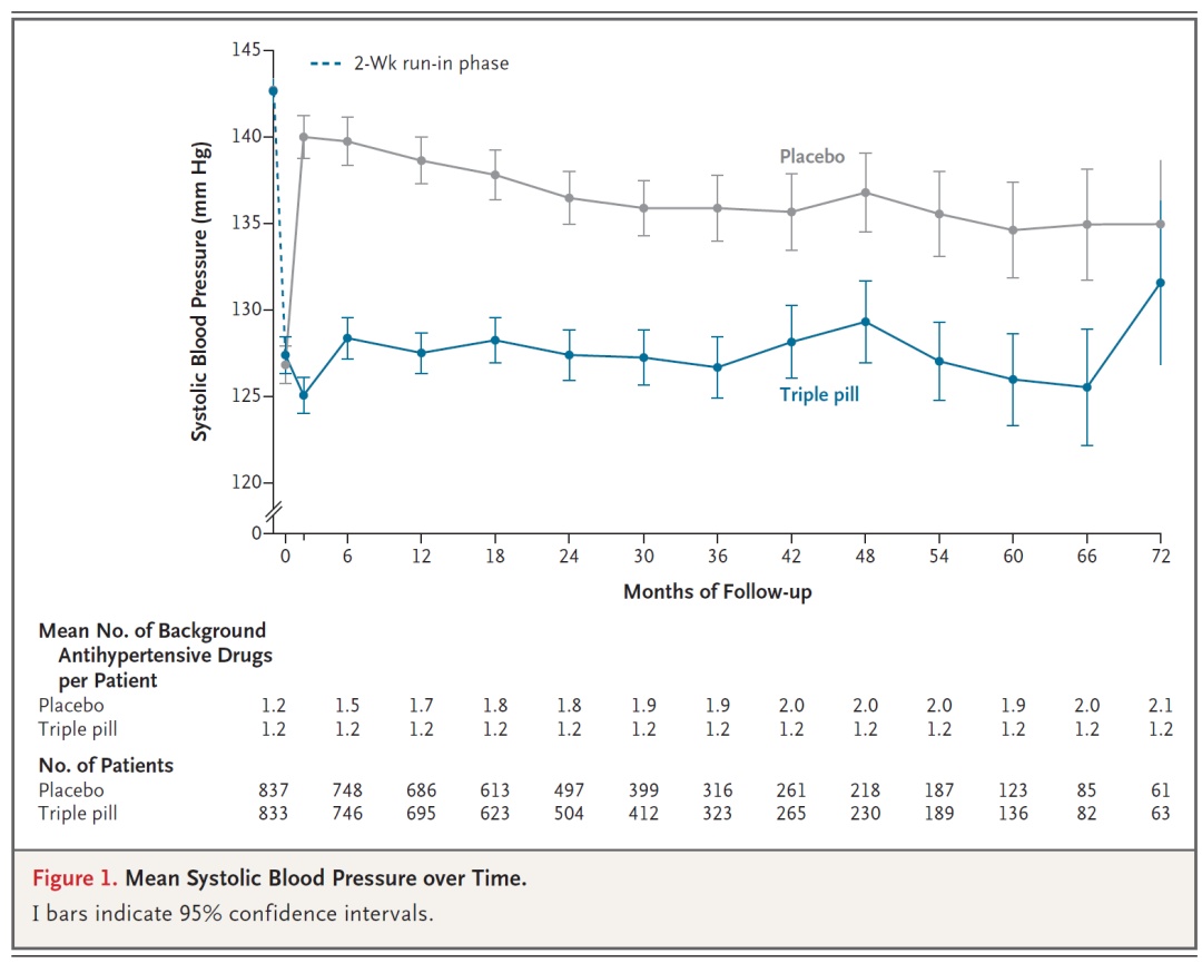 更为关键的是,这些患者平均已服用1-2种降压药,其中三分之二的患者正在服用两种药物。“三联药片是在现有治疗基础上的叠加干预,这与以往研究从未用药患者开始治疗的场景不同,更贴近真实临床需求。”克雷格说。