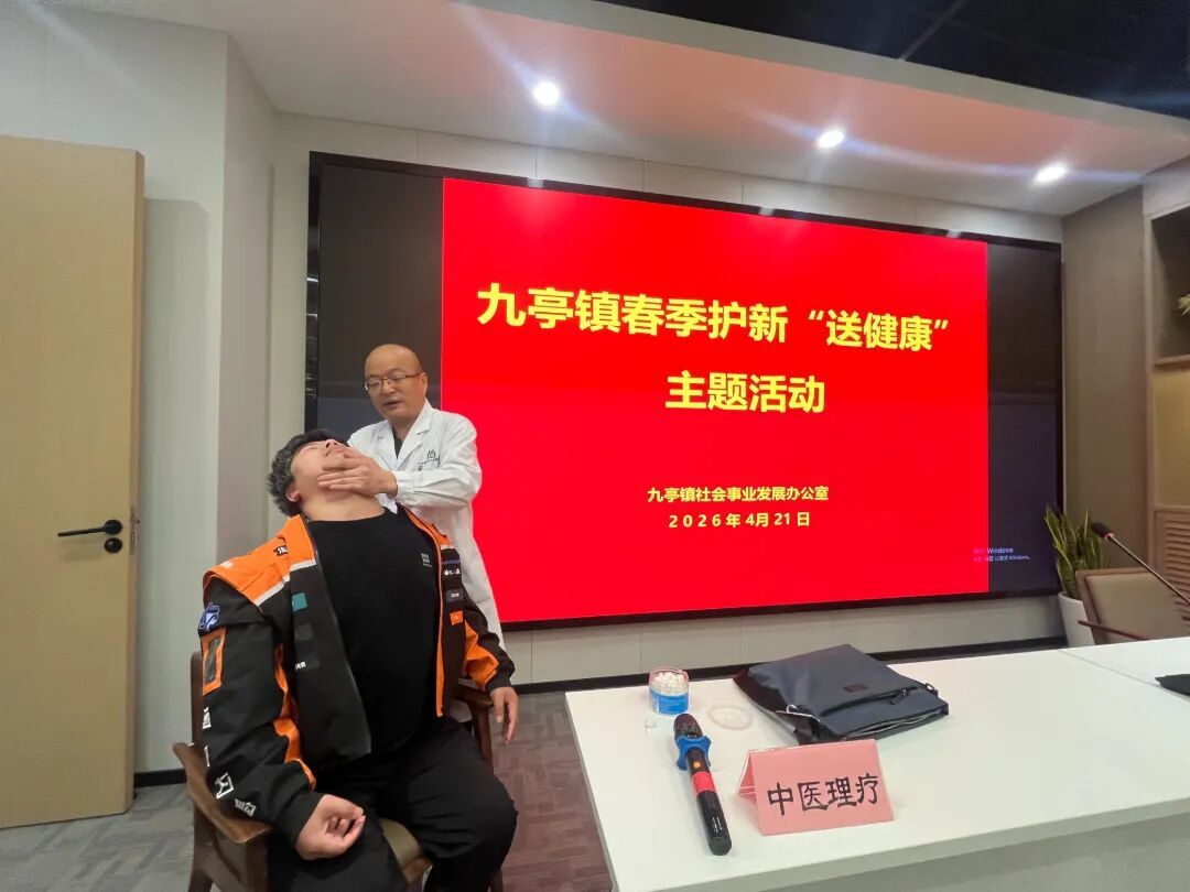 为落实松江区总工会“四季暖新”专项活动部署, 关爱镇辖区职工身心健康,精准回应新就业群体健康需求, 4月21日,九亭镇总工会联合九亭镇社会事业发展办组织开展“送健康”主题服务活动,以多元便民的健康服务、暖心贴心的慰问举措,把工会“娘家人”的温暖与关怀送到职工身边。