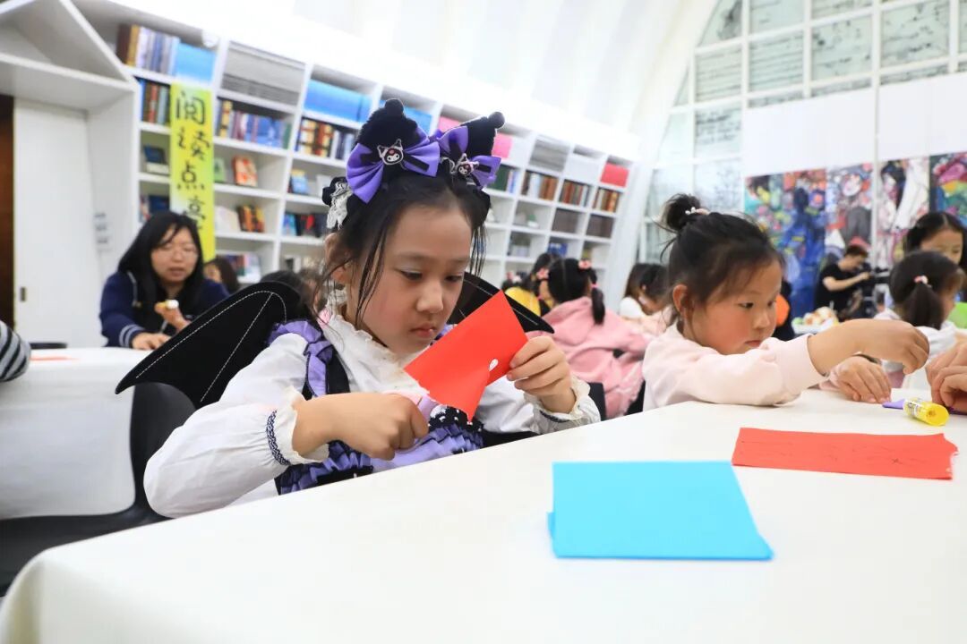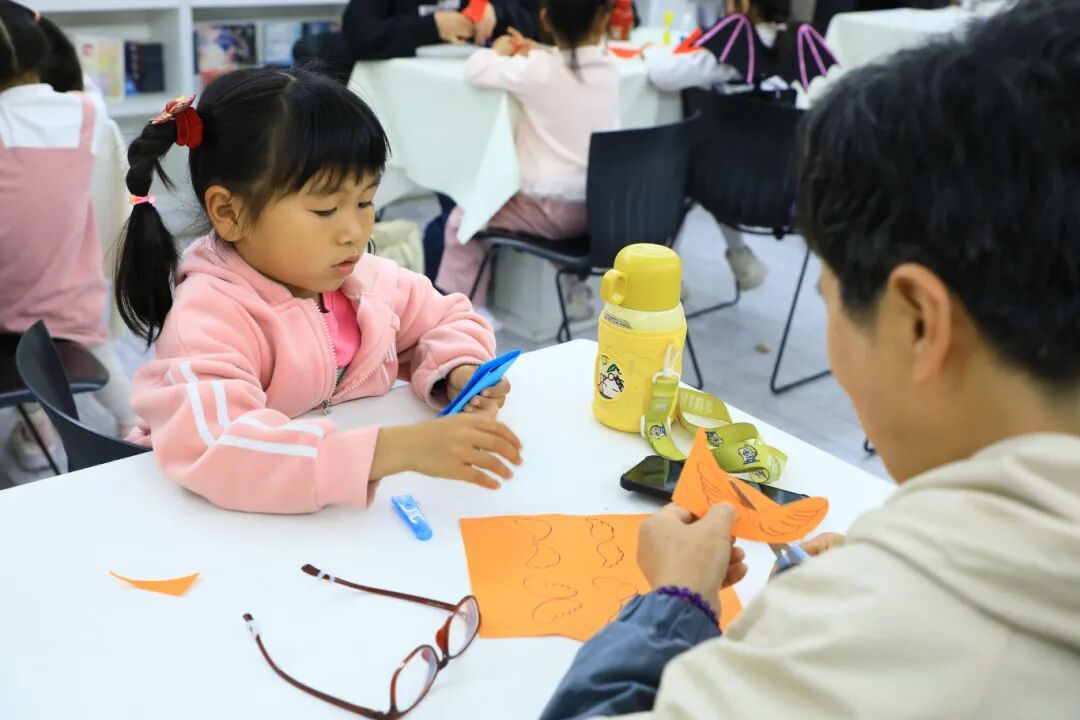 活动中,亲子家庭一同走进绘本《神奇飞书》的世界。温暖细腻的故事、富有感染力的画面,让孩子们沉浸其中,也在潜移默化中感受到阅读带来的想象力与力量。随后的手工DIY环节里,孩子们在家长陪伴下制作专属“魔法飞书”,一剪一贴、一折一画之间,阅读变得可触可感,现场欢声笑语不断。