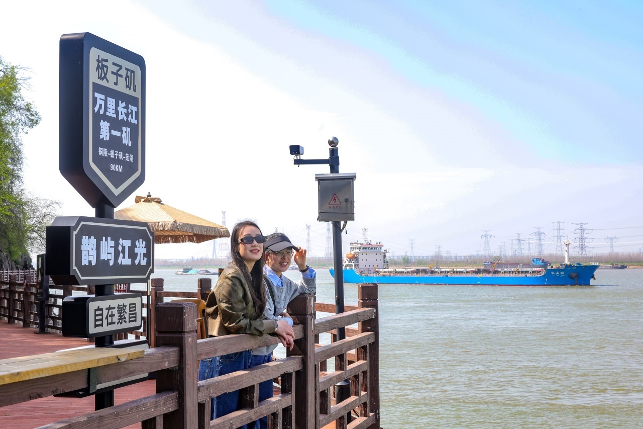 长江南岸,板子矶头。近日,记者来到芜湖市繁昌区荻港镇板子矶旅游景区,登上矶头,长江风光尽收眼底,一株古树矗立山巅,枝丫参天。