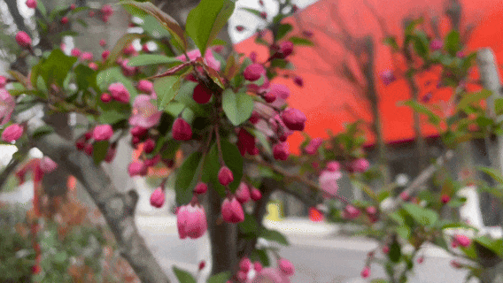 白的纯净、红的含蓄、紫的烂漫,春色层层叠叠,相映成趣。