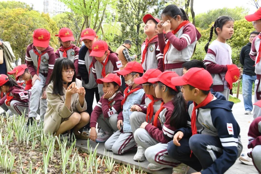 漕溪公园作为承载漕河泾地域文脉的百年园林,园内留存13株珍贵的古树名木,百年古牡丹更是独树一帜,每一株古树都是不可再生的自然与文化遗产,更是受法律保护的珍贵资源。此次活动紧扣“古树寻踪”主题,区绿化管理中心充分发挥专业资源优势,特邀社区园艺师、一级花境师张晓丽带队导赏,带领求知小学的学子们漫步全园,沉浸式品读牡丹文化底蕴,聆听13株古树的岁月故事,感受漕韵园林的独特魅力。
