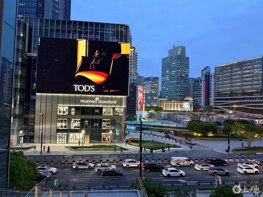 记者注意到,开业首日,还有部分商户在做最后的货品上架和设备调试。其中,MUSINSA Standard将于4月24日正式对外营业,备受关注的MUJI无印良品城市旗舰店将于4月25日开业,目前品牌沿华山路的外立面已经揭开面纱。汤姆猫儿童乐园、MINISO名创优品城市旗舰店等满足家庭体验式消费的品牌也已开门迎客。