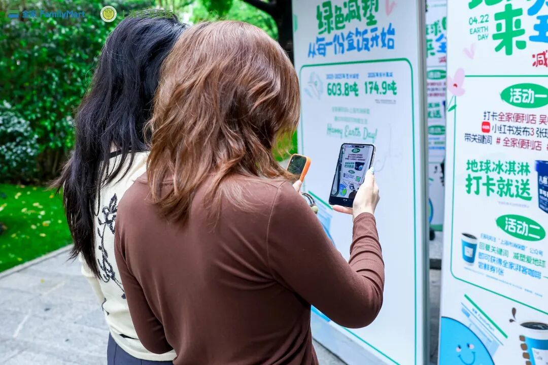 在上海吴中路三店的沉浸式主题快闪现场,前来参与活动的消费者络绎不绝。有消费者表示,“今天来全家门店,喝一杯倡议绿色环保的咖啡、打卡领一盒地球冰淇淋,才发现环保原来就在我们的日常生活中”。