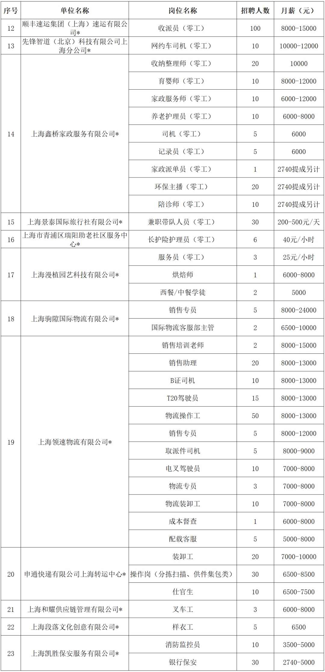 备注:“*”为长三角物流零工市场代招企业,现场工作人员可为求职者提供岗位咨询及简历代投服务