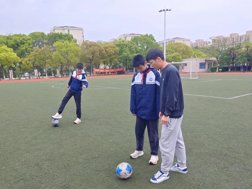 在浦江二中,“思乐”文化不仅体现在德育和课堂,更在两大办学特色(科技教育与足球教育)中落地生根,让不同特长的孩子都能闪闪发光。 学校不仅拥有上海市唯一建在校内的防震减灾科普馆,更将地震体验平台、次生灾害走廊等先进设施与日常教学、社团活动深度融合,让科技防灾从书本知识变为可感可触的生动实践。近三年,学校学生在市级以上科技教育竞赛中获奖超50人次。 陆宇洋(左二)参加应急演练 “无人机已锁定‘被困者’位置,生命体征信号稳定,请求地面救援组跟进!”在浦江二中操场临时搭建的模拟震后废墟区,八年级学生陆宇洋操控着无人机。作为学校“无人机搜救小队”的核心成员,他正在参加第17届闵行区防震减灾科普技能竞赛的实战项目。屏幕实时传回的高清画面与热成像数据,为救援决策提供了关键信息。像这样的场景,在浦江二中的防震减灾教育中已是常态。 绿茵场上,同样激情飞扬。作为全国青少年校园足球特色学校、上海市校园足球“一条龙”布点校,浦江二中把足球教学作为每位学生的必修课。从班级足球队到年级、校级梯队,从足球嘉年华到足球联赛,从明星教练进校园到足球文化节——每一个孩子都能在奔跑中享受乐趣、增强体质。 孔智玮老师的足球课堂 “注意脚弓发力,传球要稳!”下午四点半,孔智玮老师正带着校男子足球队进行基础训练。他身着运动服,穿梭在学生中间,纠正着孩子们的传球姿势。他初中时曾是这所学校的足球队成员,因热爱足球而选择体育专业,毕业后回校任教。孔智玮感叹道:“我希望学生们不仅能学会踢球,更能学会坚持与责任,就像当年足球教会我的那样。” 从“思乐”德育到“思乐”课堂,再到“思乐”特色,浦江二中用近80年的积淀与创新,诠释了“为了每一位学生的发展”的真正含义。全国荣誉、市级奖项、学生的笑脸、家长的认可……这所老百姓家门口的好学校,正以“思乐”为帆,载着每一个孩子驶向自信而闪光的未来。
