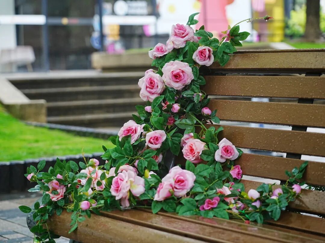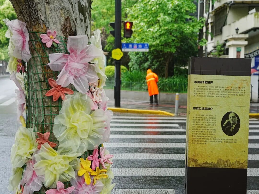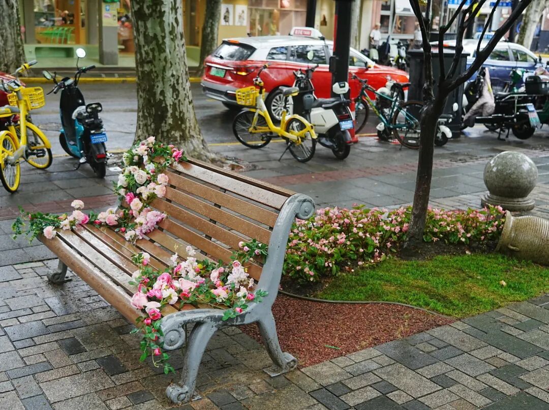 花系造物部落围绕愚园路、长宁路分布,除了有2026上海国际花卉节长宁分会场主题IP,还设置了多个花卉打卡点位,就连座椅上也开满了花,在这里走一走,逛一逛,带走的是一份独一无二的春日回忆。