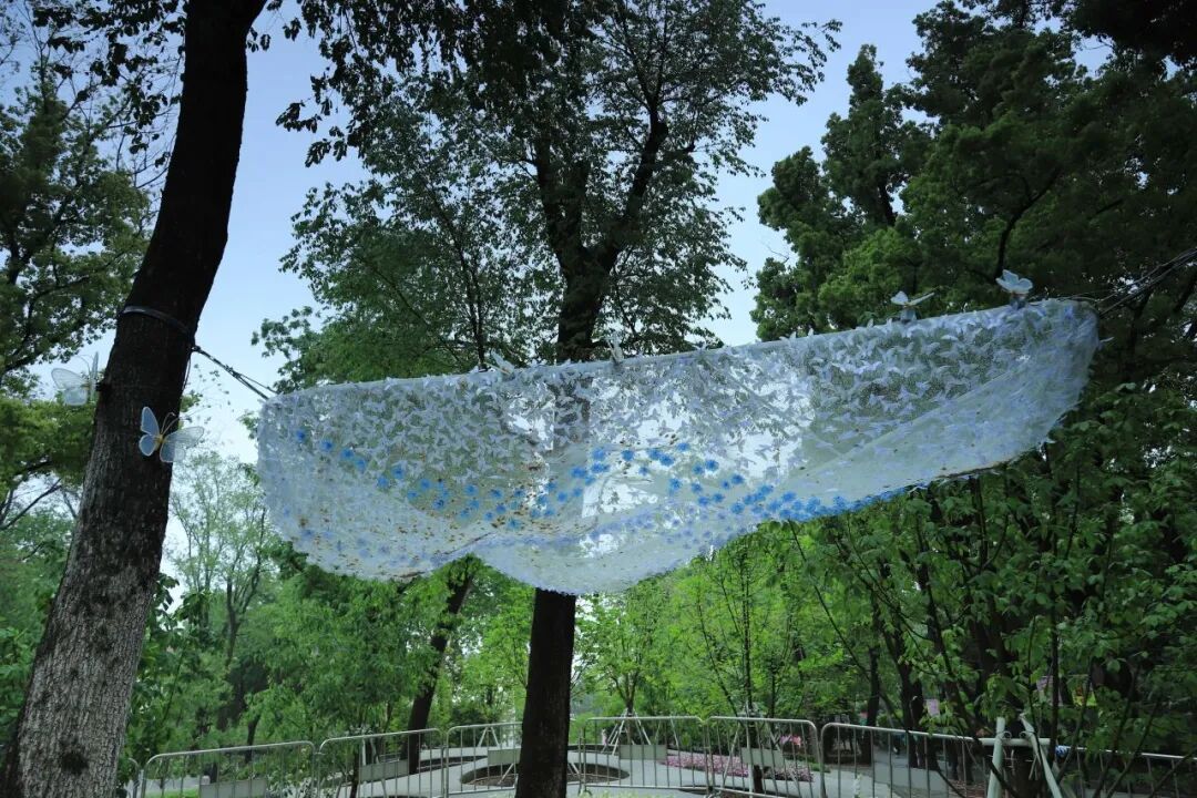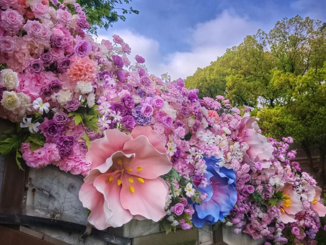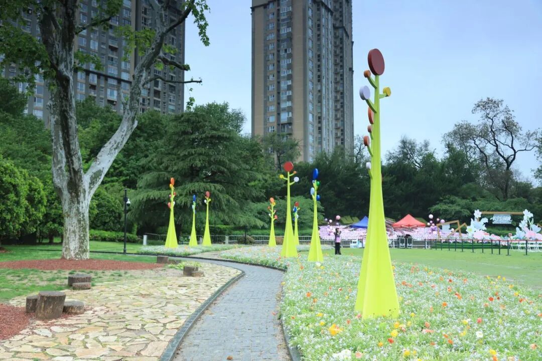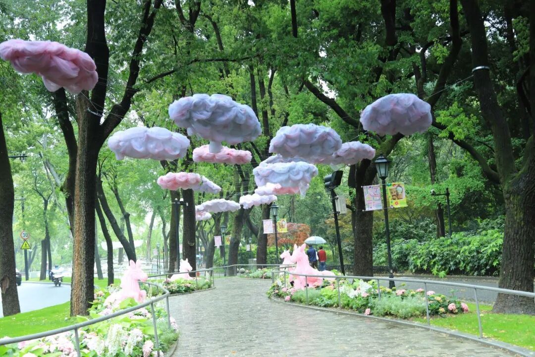 Momo精灵部落位于中山公园南区,主打灵动、创意与社交。西草坪上,情绪精灵、森语、花囡囡等5个专业搭建节点错落分布,像从泥土里冒出的彩色梦境;虹桥蒸雪、石亭周边则有“繁花融心”“爱栖花亭”等专业作品,适合爱新鲜、爱拍照的你。