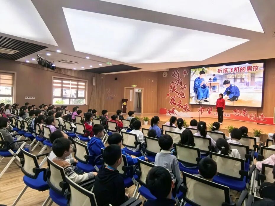 《折纸飞机的男孩》里,钱学森童年时对着纸飞机痴迷钻研的模样,更是点燃了孩子们的科学梦想,不少孩子听完后,拿起纸笔画起了自己心中的“航天梦”。