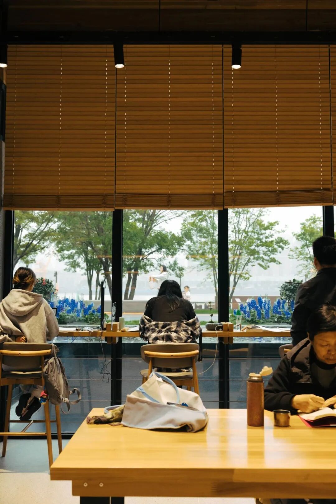 傍晚的杨浦滨江最安静。祥泰木行的旧墙在暮色里变深,灯光从窗户透出来,是一格格的暖黄色。书卷气从窗里飘出来,和咖啡香缠在一起,谁也不抢谁的风头。