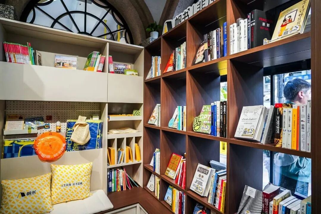 帆书武夷路城市书房是一座由百年历史建筑改造成的书房,亮黄色的外观在梧桐树下格外亮眼,24小时自助借书亭更是打破了阅读的时间限制——内置3000余册精选图书,市民扫码就能免费借阅,夜间路过也能随时取还。