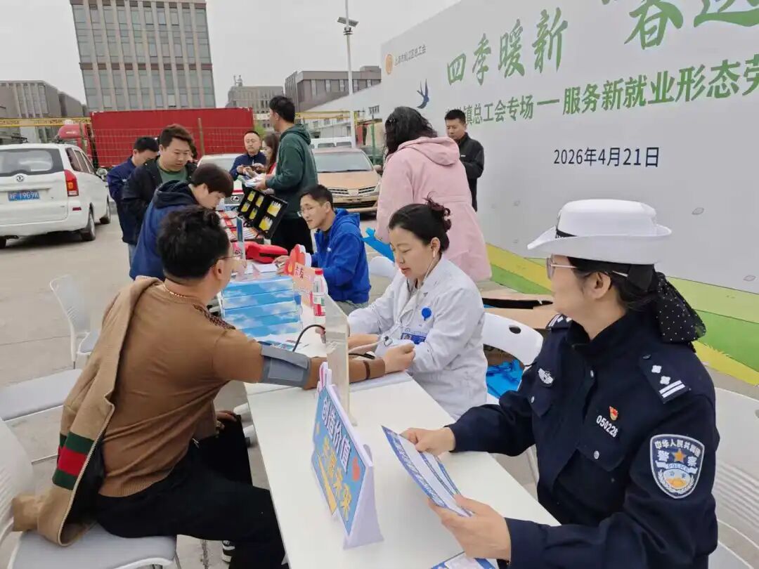 为深入推进全总“工会维权服务新就业形态劳动者三年行动”及“工会阵地建设和作用发挥专项行动”,把对新就业形态劳动者的关心关爱真正落到实处,4月21日,车墩镇总工会联动辖区网格工会,以工会驿站为核心阵地,暖心开启“四季暖新•春送健康”活动,为奔波在一线的快递员、外卖骑手、货车司机等新就业群体,送去了满满的关怀与实用的“安全礼”。