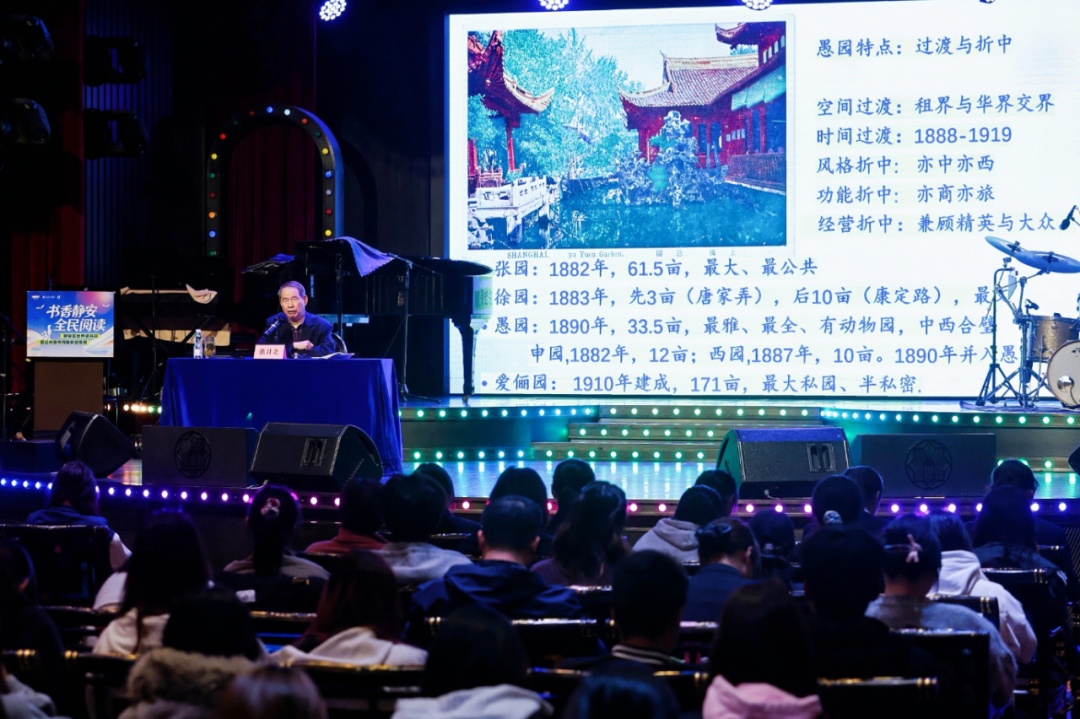 启动仪式后,“愚YUE静安”首场活动举行。书香静安全民阅读推广大使、上海市文史研究馆馆员、上海社会科学院研究员熊月之特别带来以“愚园文化在海派文化中的独特地位”为主题的文化讲座。熊月之在讲座中从愚园历史、人文内涵说起,详细论述了愚园文化在海派文化中的特殊性、唯一性,并与现场观众进行互动。