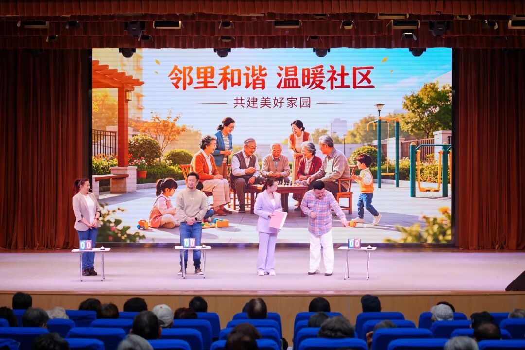 另一场小品《文明邻里知识竞赛》则换了一种轻松的方式。主持人带着四位选手同台进行知识比拼,小区遛狗规范、楼道文明、高空抛物、电动车停放等常见问题被一一搬上竞赛环节。选手们从懵懂到了解,过程中包袱不断,笑声此起彼伏。观众也跟着一起思考、一起回答,不知不觉中,社区文明安全理念就这样留在了心里。