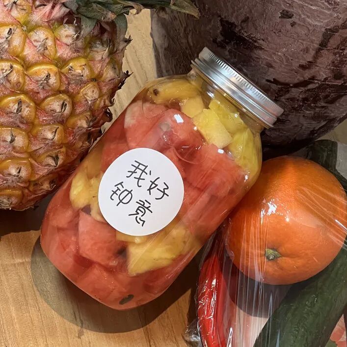 大瓶实惠装,满满的大块西瓜、菠萝,颜值与解渴并存,大饱口福。