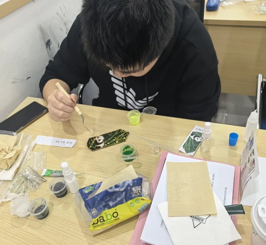 在非遗体验环节,大家沉浸式感受掐丝珐琅非遗技艺魅力,亲手完成制作专属的熊猫抱竹掐丝珐琅书签,在指尖匠心传承中感受传统文化的博大精深。