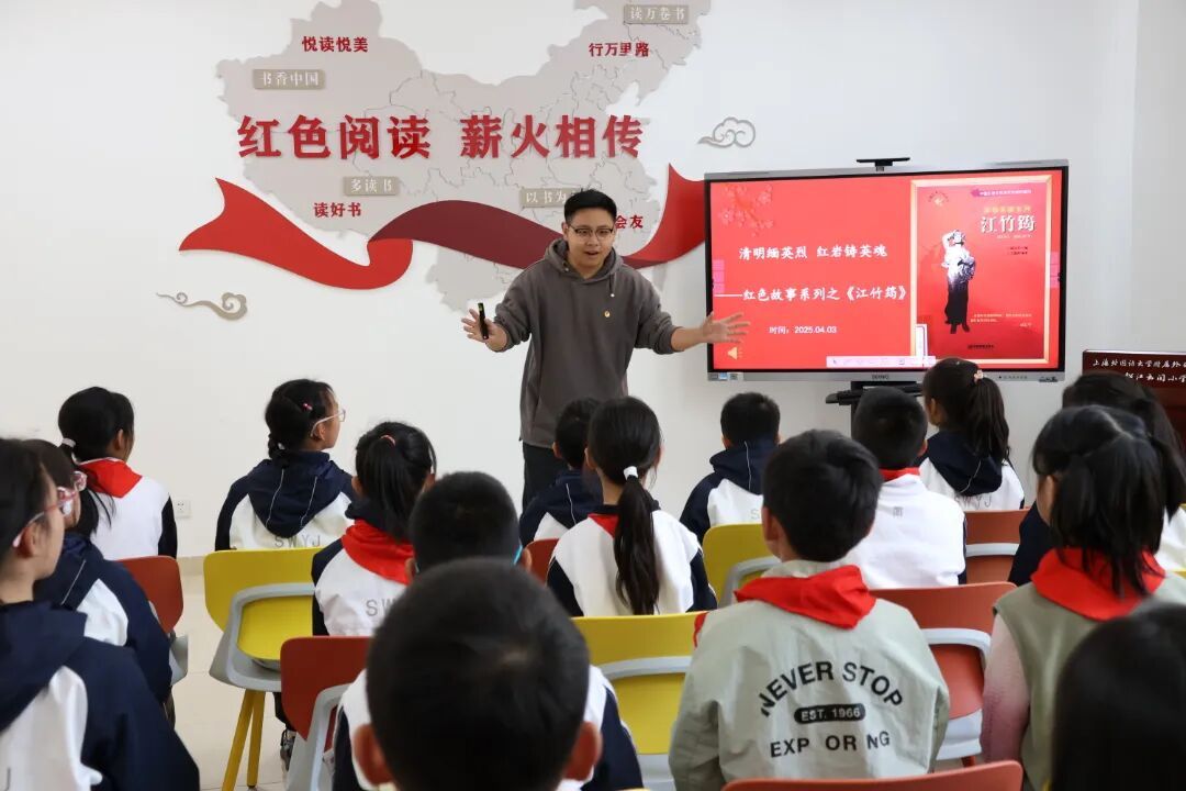 800多平方米的空间里,约三万册图书静静陈列,100多种报刊杂志定期更新。这里没有冷冰冰的书架排列,取而代之的是舒适的阅读区、安静的静读角、温馨的红色阅读馆,还有专门为教师准备的研习空间,印证着这里已经成为全校师生最喜爱的“精神栖息地”。2020年建校之初,上外云间小学就把阅读放在育人的核心位置。校训“读书润泽生命、奋斗点亮未来”并非一句口号,而是实实在在的行动指南。学校的目标很明确:让阅读成为每个孩子的生活方式,让书香浸润校园的每一个角落。