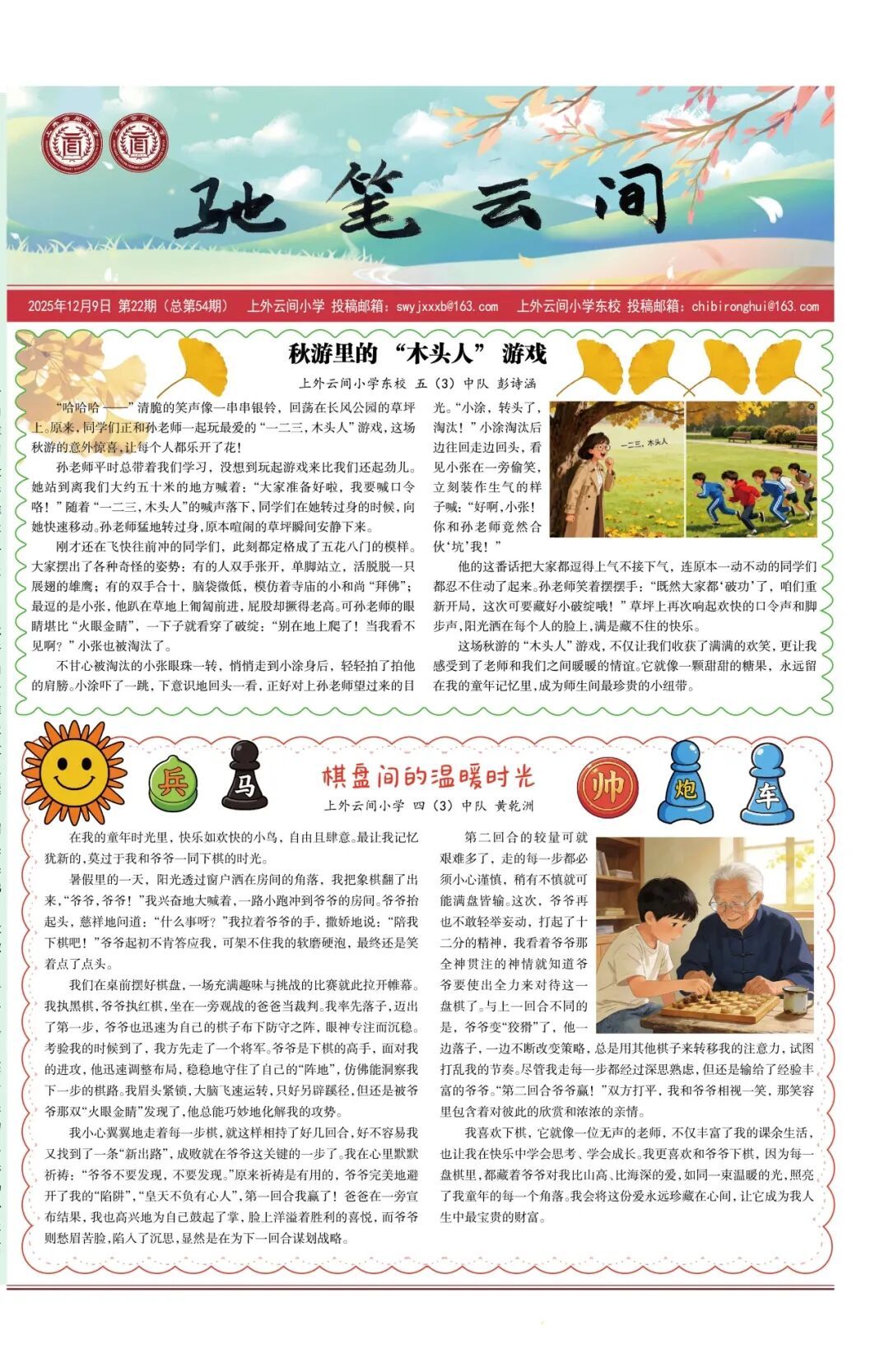 阅读不能只发生在学校里。学校鼓励家长和孩子一起读书,校刊《驰笔云间》刊登家长和孩子共同完成的书评、读后感等。不少家庭因此建起了自己的“家庭图书角”,睡前共读成了最温馨的亲子时光。近两年来,孩子们在市级及以上征文、演讲等比赛中频频获奖。这些成绩的背后,是阅读给予的积淀与力量。