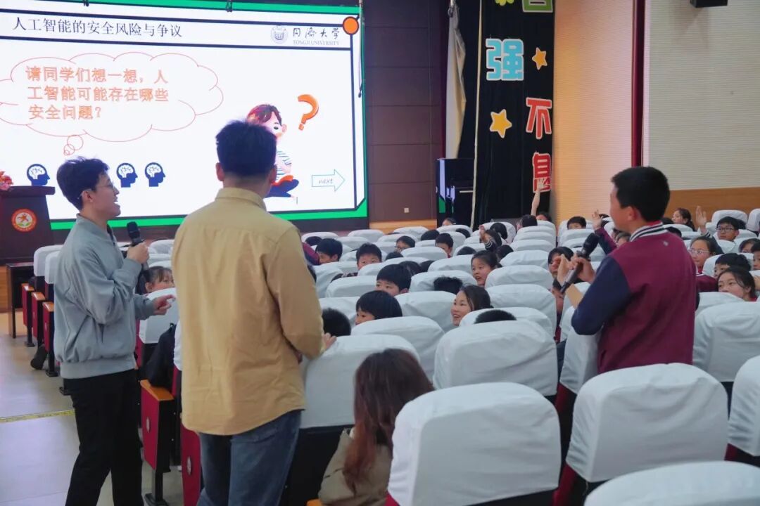 4月21日,松江区新浜学校邀请同济大学电子与信息工程学院(下称“电信学院”)青年讲师团来校,举办“走进人工智能”主题科普讲堂。本次活动由新浜镇团委、同济大学电信学院团委与新浜学校联合组织,旨在帮助乡镇学生了解前沿科技知识,培养科学素养。新浜镇团委负责人、新浜学校校领导、驻村选调生共同参加。