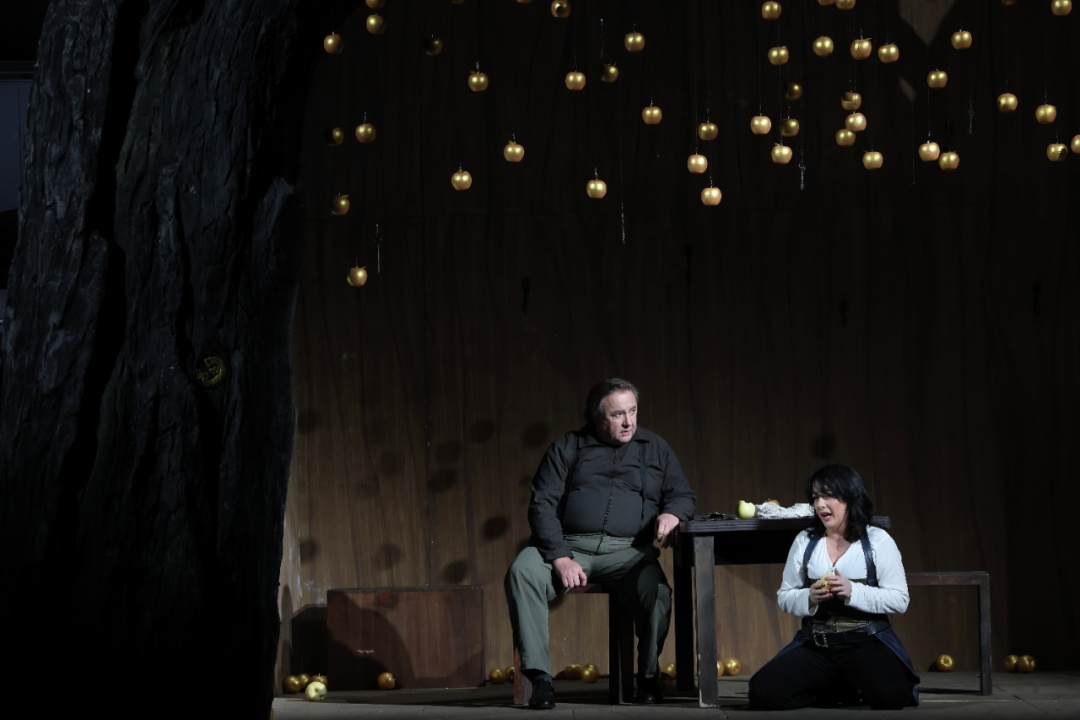 舞台设计卡尔海因茨•贝尔将《女武神》的舞台空间形容为“流动的过程”。舞台上,空间的转换不断发生,不同场域在连续的过渡中彼此连接。看似传统的写实场景很快被打破,一些场景中许多个空间同时叠加,有时同一空间在不同幕之间重复使用,但状态不断变化……作为导演,卡塔琳娜·瓦格纳希望以现代的方式呈现宏大而精致的戏剧冲突,观众只需保持兴趣、沉浸感受,便能捕捉每个角色与空间独有的“跌落时刻”。