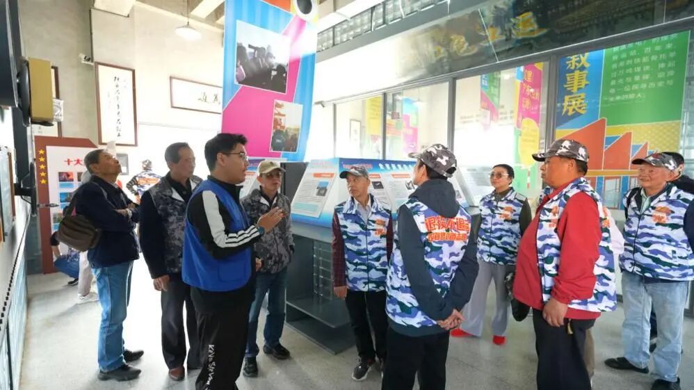 老兵们沿着改造后的街巷边走边看,实地探访社区展厅、便民服务空间与文化活动阵地,深入了解228街坊在老旧小区改造、基层治理创新、便民服务升级、历史文化传承等方面的经验做法。展厅内,从“二万户”老工房的时代记忆到新时代工人新村的拔节生长,一张张新旧对比照片、一份份荣誉奖牌,让老兵们直观感受到上海住房保障与城市更新的发展历程,也为两地街道后续开展社区服务、老兵关爱工作拓宽了思路、提供了借鉴。