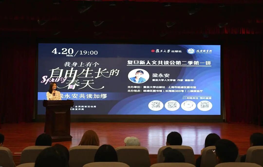 4月20日晚,在2026“书香杨浦”全民阅读活动周暨上海市公共图书馆服务宣传周之际,由复旦大学出版社、上海市杨浦区图书馆共同主办的“复旦新人文共读会”第二季在杨浦区图书馆正式启动。