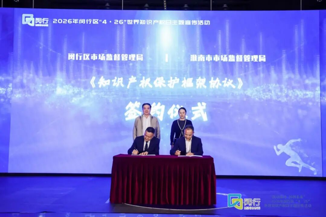 活动以“主场仪式+T台秀+情景剧+外场市集”的多维形式精彩呈现,让知识产权“看得见、摸得着、带得走”。仪式环节,上海市数据产品知识产权登记闵行区服务窗口正式启动,9位营商环境体验官获聘,地理标志七宝黄金瓜团体标准重磅发布,闵行区与淮南市签署跨区域知识产权保护协议,这一系列硬核举措都充分彰显出闵行知识产权保护的制度张力。