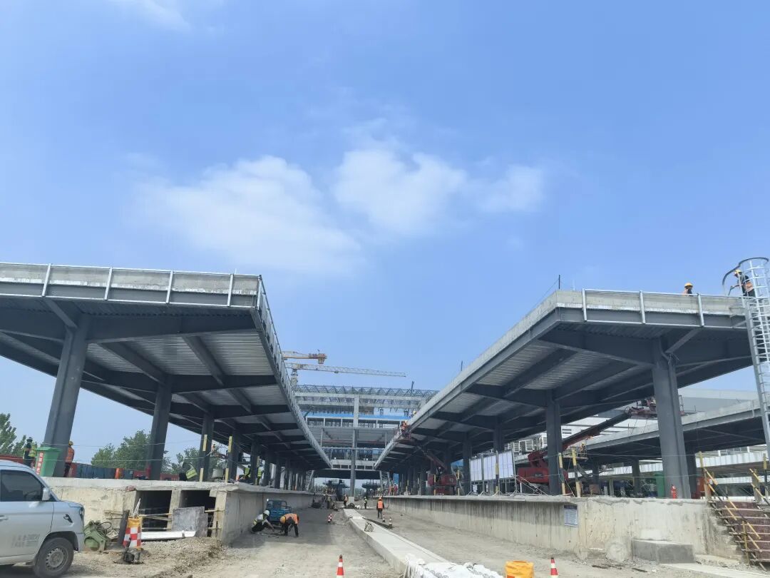 目前,阜阳西站扩建工程各板块施工均按计划稳步推进,整体建设进度持续刷新。3座站台已基本建成,施工人员正在对上部进行完善;铁轨下方正在进行排水及路基施工;北侧站房与既有站房相接,主体结构已封顶,施工人员正在进行上部屋面施工。计划7月底全部完工,为线路按期开通运营创造有利条件。