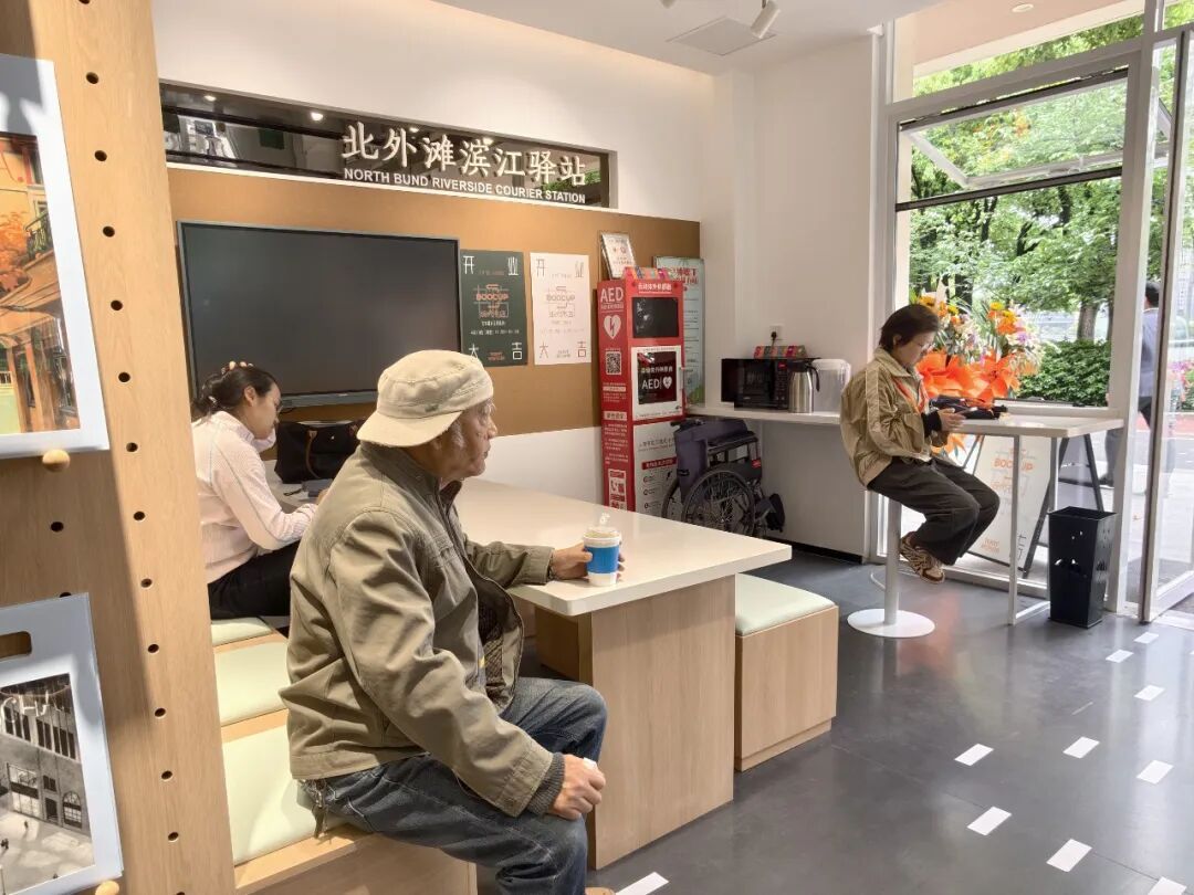开业当天,记者遇到了正在北外滩滨江散步、进店休憩的市民李弘义。谈及北外滩滨江驿站的前后变化,他感慨道:“这里环境更好了,比起以前热闹了不少,对我们老年人来说,真是个难得的休憩好去处。”