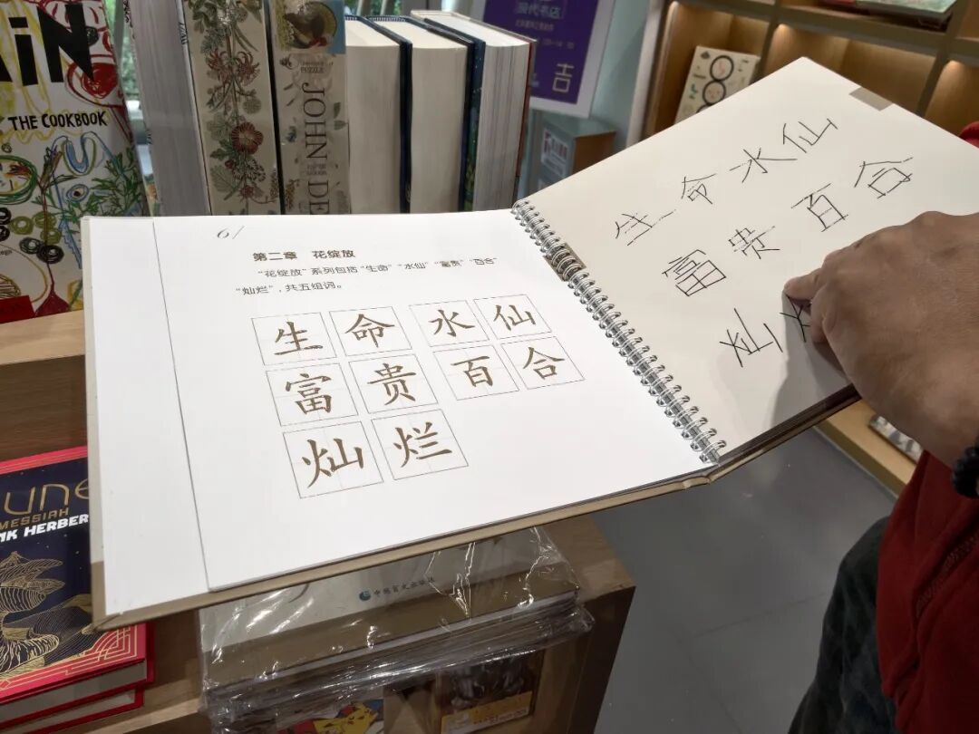 书店亦充满公益情怀。现场展示的一本盲人书籍中,文字均为凸起盲文,还有盲人自己所绘画册的图片。这类公益读物同样纳入展陈。书店还与各大出版社紧密合作,将未正式发行的新书提前引入。