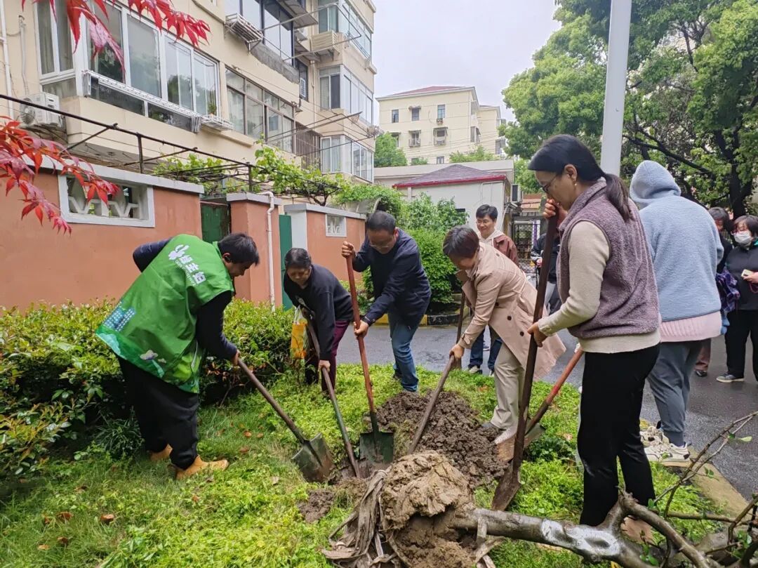 上午时分,伴着淅淅沥沥的小雨,网格与居民区书记携手居民共同栽种海棠树苗,为小区增添盎然绿意;此外,大家分工协作,将番茄、辣椒、茄子等菜苗悉心栽种进社区 “一米花园”,在亲手耕耘中感受耕种乐趣,收获田园喜悦,让绿色扎根日常、融入生活。