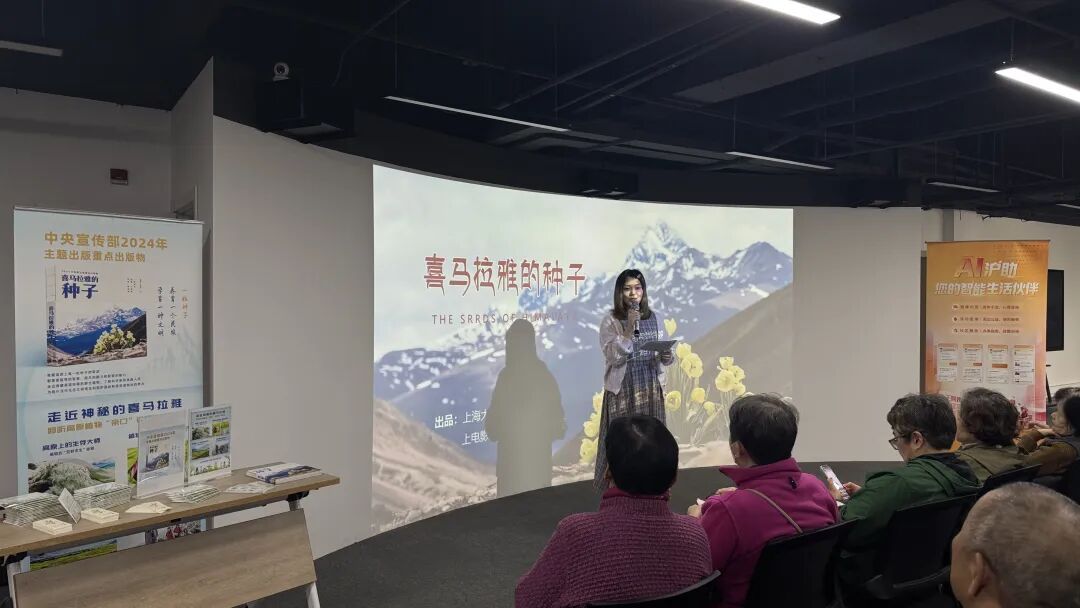 本次活动打破了传统读书分享会的形式,将同名图书与纪录电影深度融合。曹家渡街道数字苑播放《喜马拉雅的种子》精华影片,以镜头为笔,为大家“翻开”了一本鲜活的“青藏高原植物百科全书”,让观影者沉浸式领略雪域秘境的神奇。结合同名图书,从银幕回到文字,解读影片背后的植物故事、科研历程与生态意义。这种“文字+光影”的联动,让抽象的科普知识变得直观可感,也让大家感受到,阅读不止于纸页,更能以多元形式拓宽视野、滋养心灵。