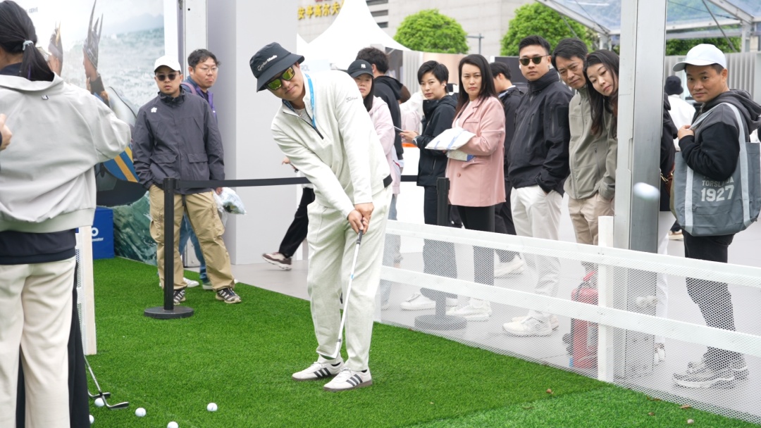赛场上群星闪耀,赛场外的公众活动区同样亮点十足。主办方结合球迷的实际需求,设置了不同难易程度的高尔夫互动体验项目。