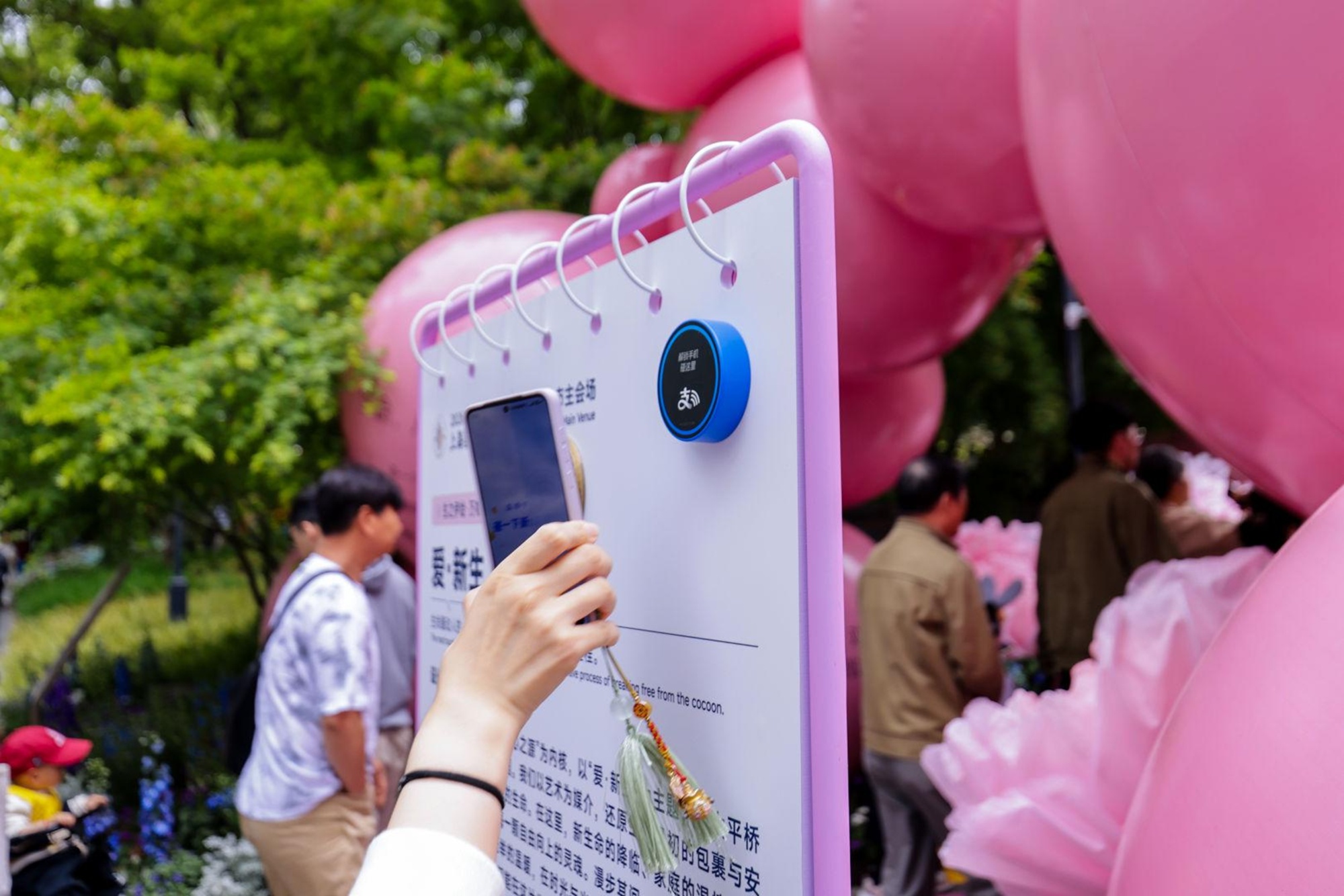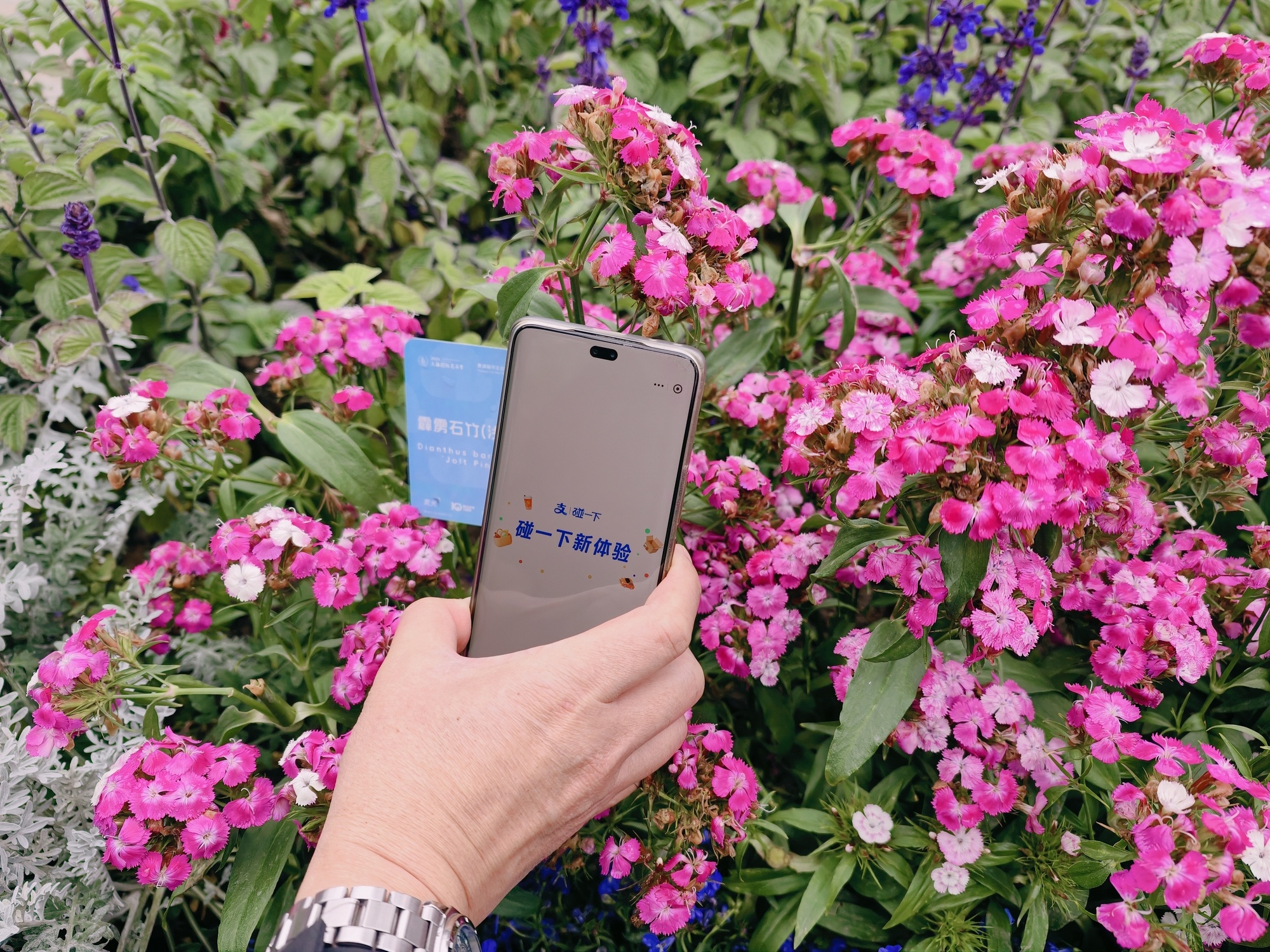 活动设置五大类、千余处打卡点,覆盖花卉节主会场、重点商户、主题市集和花艺装置等场景。具体包括:40余处景点介绍牌、近千个AI识花互动点、商圈花艺橱窗、支持“碰一下”支付的商户及市集摊位,以及分别位于两个主会场的主题文创店。市民只需将支付宝升级至最新版并开启NFC功能,轻触贴有“碰一下”标识的物料即可完成打卡。