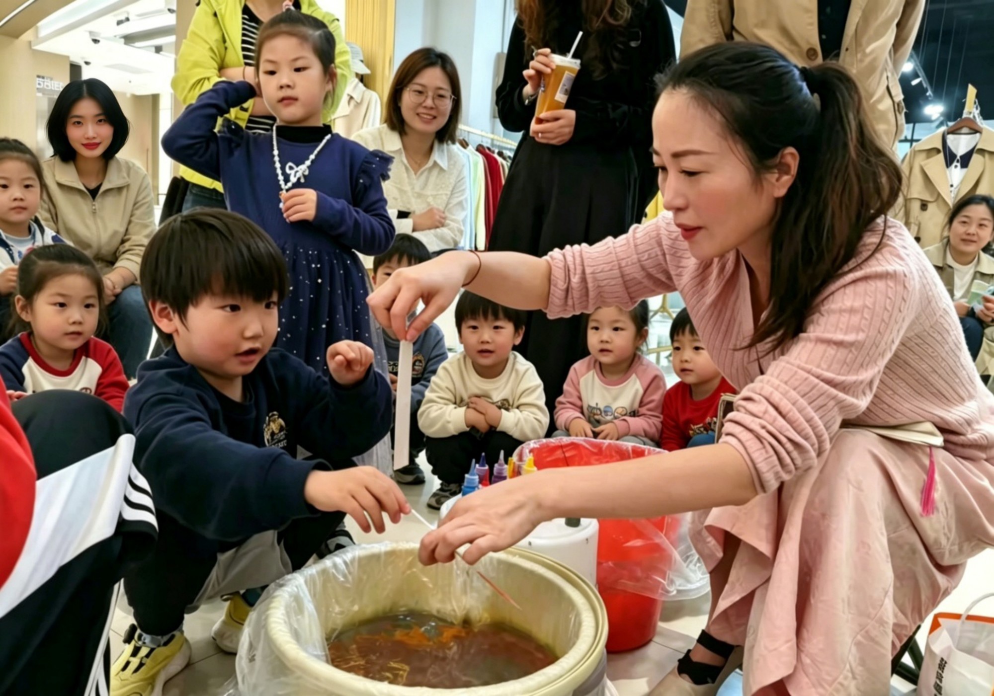 活动现场,音乐博士杨宇嘉的手碟与非洲鼓演奏《静谧·激越》将观众带进纯净的声音森林;观美音乐剧团的小演员们重现了《狮子王》辛巴从失去到觉醒的成长之路;20多位小选手登上才艺竞演舞台,朗诵、唱歌、舞蹈、戏曲轮番上演,简平逐一点评,鼓励他们“你们每一个人都像一束光”。音乐唱作人李一一带领全场合唱《童年》,非遗传习师董慧指导亲子手工制作,歌声与欢笑回荡在商场的每一个角落。