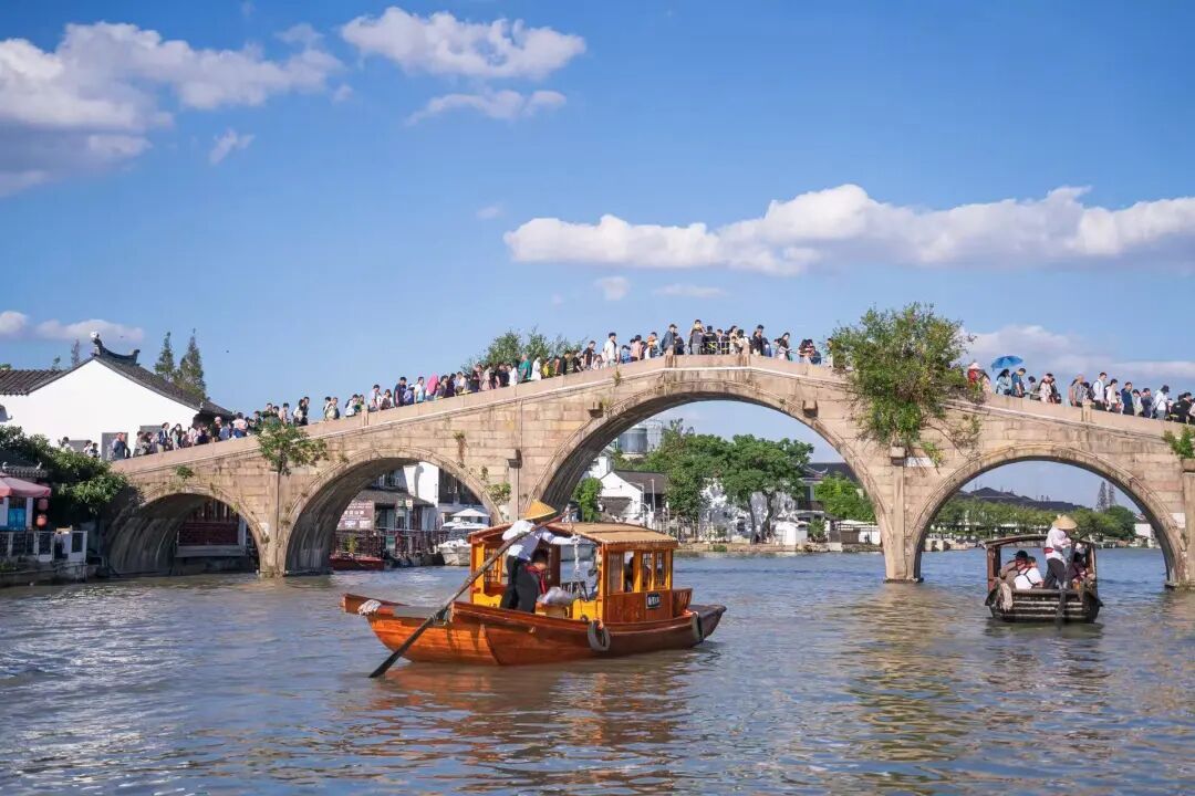 更让我欣喜的是,如今,打开社交平台,随处可见朱家角的“打卡安利”,斑驳的石板路、古朴的廊桥、地道的粽子和扎肉,都成了网友追捧的热点。不光是国内的游客,越来越多外国友人也慕名而来。去年,我还做了一篇报道——居然被外国游客反向“安利”了自己的故乡。2024年,朱家角古镇获评“最受入境游客喜爱的十大名城古镇之一”。目前,朱家角正全力打造“中国古镇入境游第一站”✨。