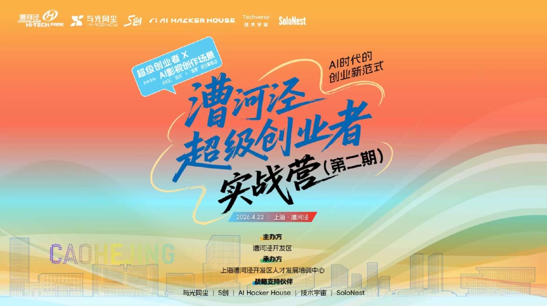 本次活动由漕河泾开发区总公司主办,漕河泾开发区人才发展培训中心承办,并得到与光同尘(上海)、S创、AI Hacker House、技术宇宙和SoloNest等机构的大力支持。