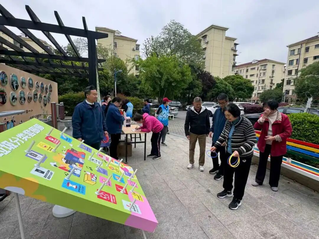 长桥街道还举办了垃圾分类知识套圈、咖啡渣循环DIY等活动,将垃圾分类与趣味游戏相结合。居民手持套圈,瞄准展板上的垃圾分类问答题精准投掷,并现场作答。大家认真思考、踊跃答题,在轻松欢乐的氛围中巩固分类知识、掌握分类技巧。