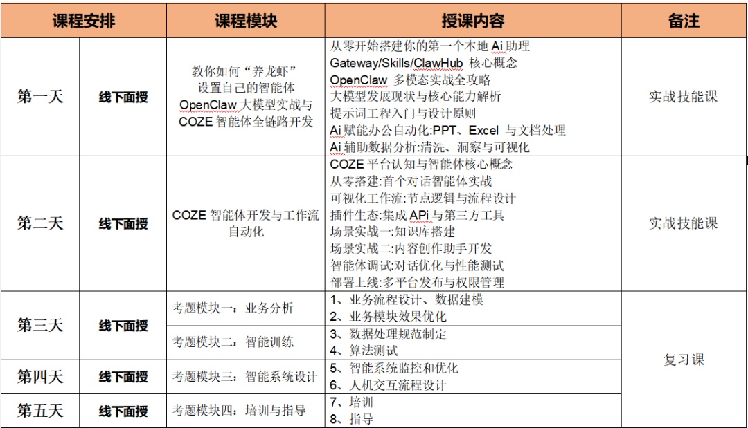上课形式:线下5次培训+在线课程+理论刷题+在线辅导。